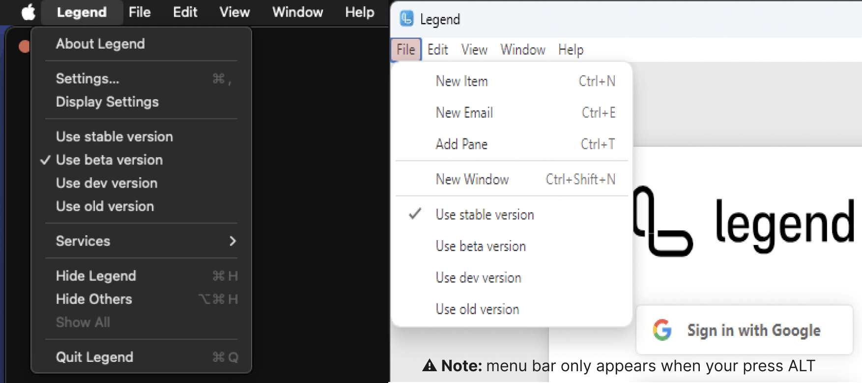 Mac Desktop Application: Click the Legend Toolbar, and you will see a "Use beta version" option.