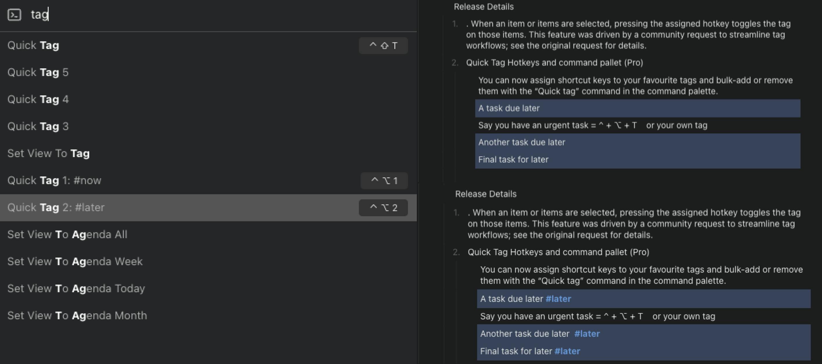Quick Tag Hotkeys and command pallet (Pro)